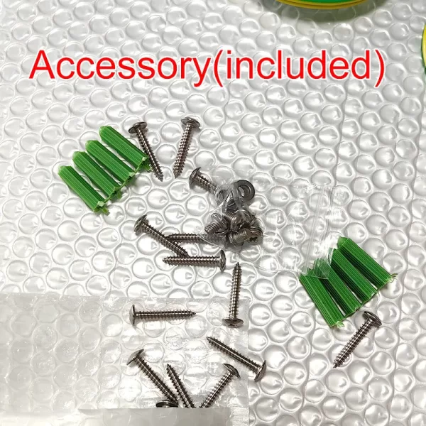 One piece of human body static electricity discharger; 4 pieces of 6MM expansion rubber; 4 pieces of stainless steel self-tapping screws; 1 piece of grounding wire; one copy of manual.