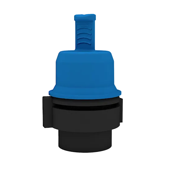 The VDA grip caps GPN 243 are suitable for protecting the connection area of VDA quick-connect spigots and are suitable for variants with and without anti-turn device. The radial symmetrical design enables automated fitting, while the easy-to-grip and knurled shaft ensures quick removal. Clamping by means of clamping strips allows pressure to equalise, and the VDA quick-connect spigots are protected all the way to the chamfer. The plastic used consists of post-consumer recycled material.