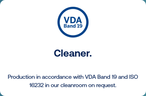 - Production in accordance with ISO 16232 in a specially designed cleanroom possible