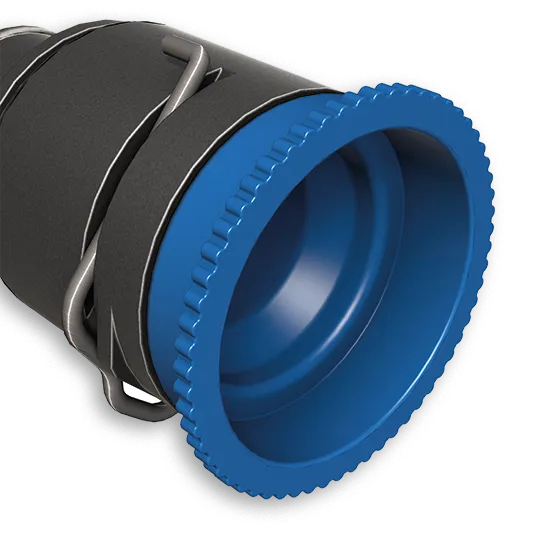 connection area of VDA quick-release couplings. The clamping on the upper edge offers a special seal and is done gently and securely on the inner sealing rings of the connector. The plastic used consists of post-consumer recyclate.