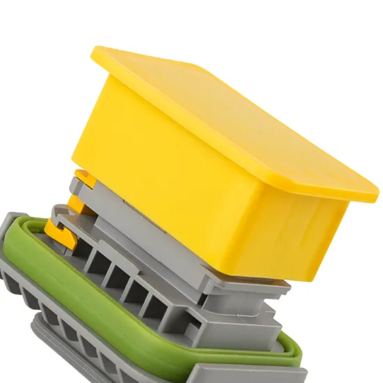 The GPN 365 HDSCS protection is suitable for the protection of the Heavy Duty Sealed Connector Series and protects pin housing and contact pins with numbers of poles between 2 and 18. Internal bars clamp in the inner contours and the connector is protected externally. The material is temporarily heat-resistant up to 150° C.
