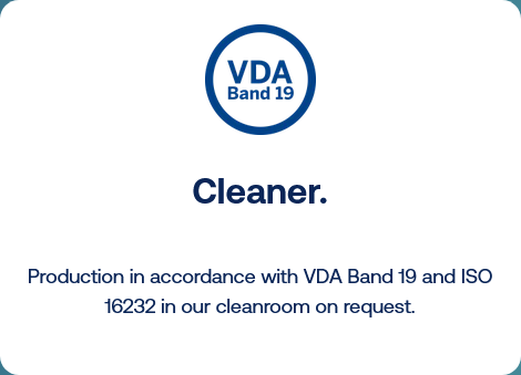 - Production in accordance with ISO 16232 possible in a specially equipped clean room