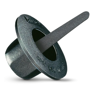 The GPN 640 flange covers protect SAE flanges from damage and contamination and hold reliably by means of clamping ribs and positioning bars. The ring lug enables easy handling while the ribs compensate for larger tolerances.