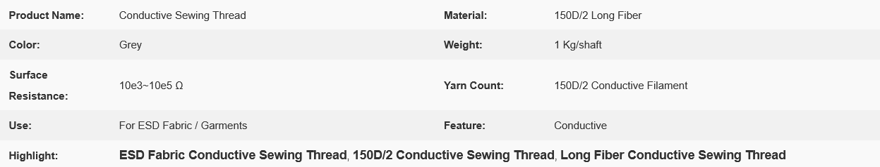 150D/2 long fiber conductive sewing thread is a type of sewing thread with specific specifications and performance.