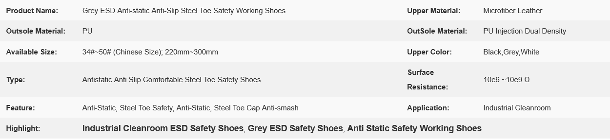 Grey ESD Anti Static Safety Working Shoes For Industrial Cleanroom