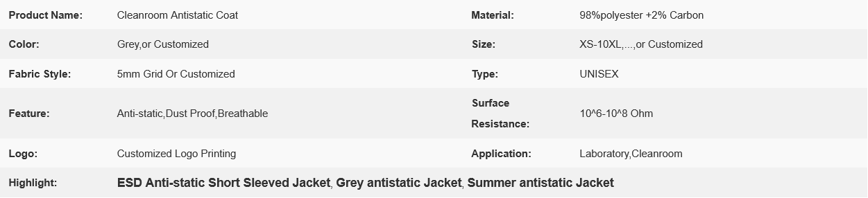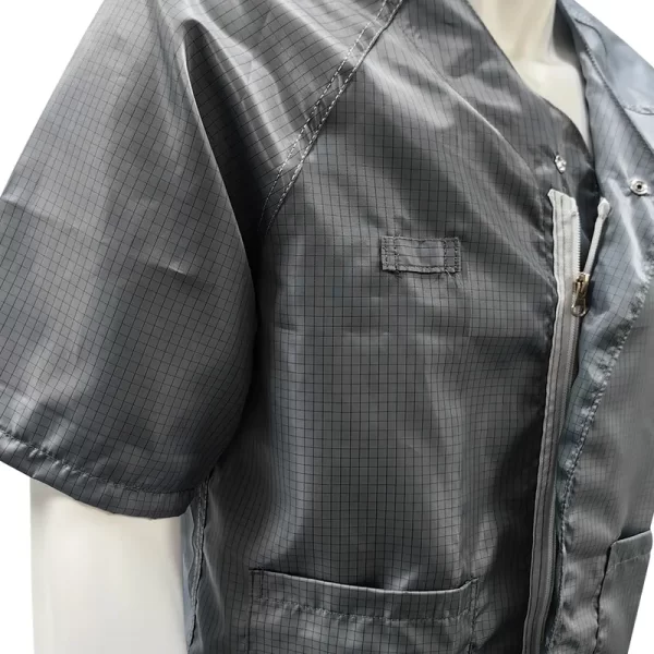 Summer ESD Antistatic Breathable Dust-free Workshop Work Protective Coat (Anti-static Short-Sleeved Jacket) is a specialized piece of protective clothing designed for use in environments where electrostatic discharge (ESD), dust control, and breathability are critical considerations.
