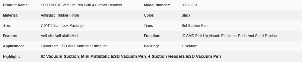 ESD SMT IC Vacuum Pen With 4 Suction Headers