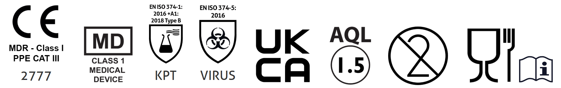 • Conforms with the requirements of EN ISO 374-5, for protection against bacteria, fungi and virus