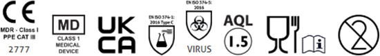 - Conforms with the requirements of EN ISO 374-5, for protection against bacteria, fungi and virus