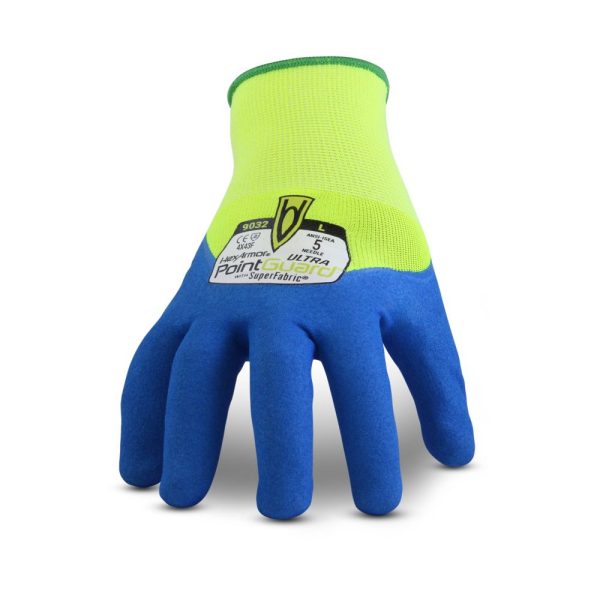 The hi-vis PointGuard® Ultra 9032 gives you industry-leading cut and needlestick resistance, complete with a hi-vis polyester shell and a sandy nitrile three-quarter knuckle coating.