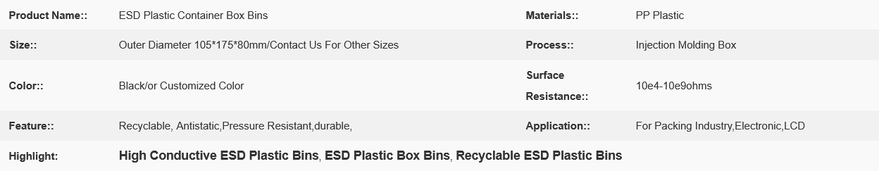 High Conductive ESD Plastic Bins For Small Parts Storage 95x165x70mm