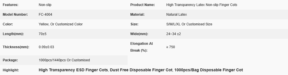 High Transparency Disposable Latex Finger Cots Dust Free 1000pcs/Bag Yellow 0High Transparency Disposable Latex Finger Cots Dust Free 1000pcs/Bag Yellow 1