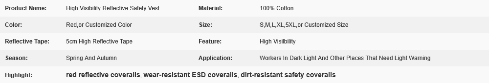 High Visibility Reflective Safety Clothes- 100% Cotton Red Coveralls