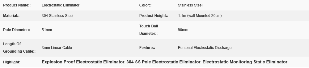Industrial Human Body Electrostatic Eliminator With 304 Stainless Steel Pole