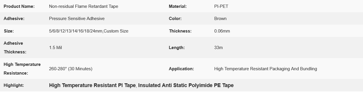 Insulated Anti-Static Polyimide Non Residue Brown High-Temperature Resistant Gold Finger PI-PET Tape