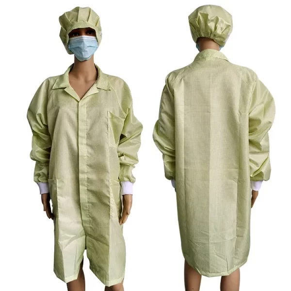 Yellow Lab Factory Used 2.5mm Grid Polyester ESD Antistatic Gown for Cleanroom