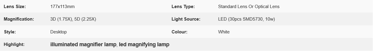 This lamp has 30 high-quality SMD LEDs that illuminate your project with bright white light, and the 7in.x4.4in. lens in 3-Diopter / 5-Diopter magnifies 1.75 times / 2.25 times letting you see any tiny details