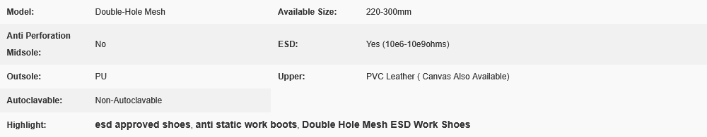 Light Weight Double Hole Mesh ESD Work Shoes W/PU Sole PVC Leather Upper