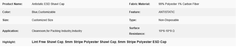 High Quality Cleanroom Lint Free 5mm Stripe Polyester Antistatic ESD Shawl Cap