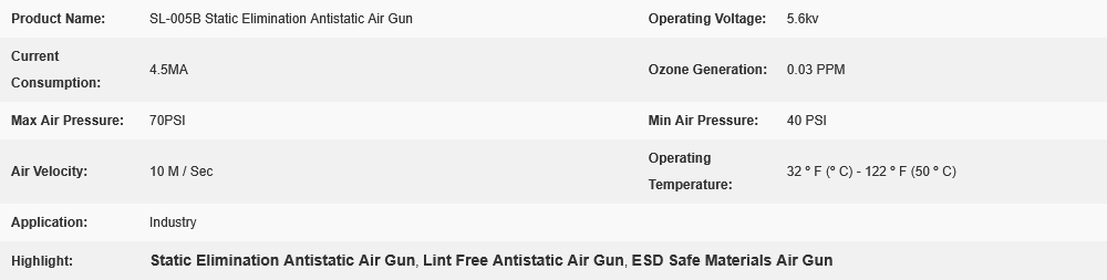 Lint Free Static Elimination Antistatic Air Gun High Efficiency