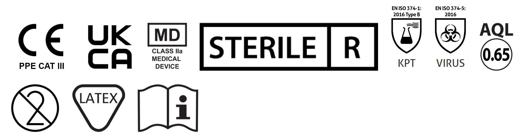 • Compliant with European Standards EN455: Medical Gloves for Single Use parts 1,2,3&4