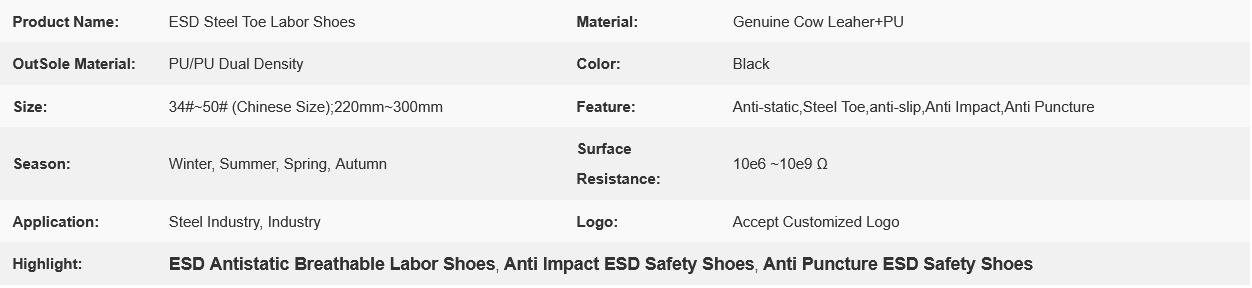Men’S Anti Impact Anti Puncture ESD Safety Shoes Antistatic Breathable