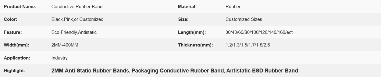 These rubber bands are commonly used in packaging applications where static electricity can pose a risk to sensitive electronic components, delicate products, or materials that are sensitive to electrostatic discharge (ESD).