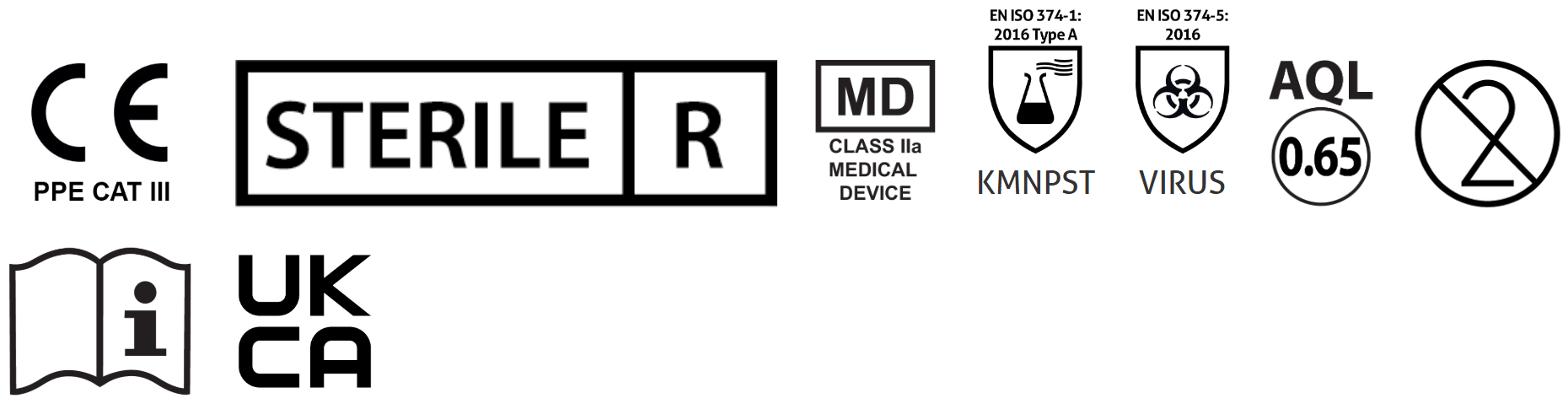 - Compliant with European Standards EN455: Medical Gloves for Single Use parts 1,2,3&4