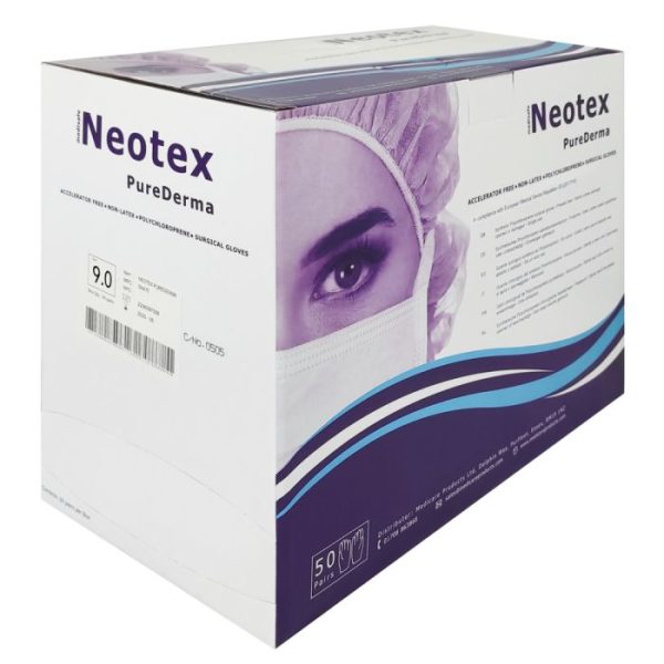 Neotex PureDerma Polychloroprene Accelerator‑Free Surgical Gloves have been developed to reduce the risk of latex-related Type I Hypersensitivities and the Type IV Hypersensitivities caused by the chemical accelerators used in the manufacture of medical gloves. These gloves are free from latex and chemical accelerators. Manufactured on ergonomically designed formers from an advanced synthetic formulation, the Neotex PureDerma offers ultimate comfort and tactile sensitivity.