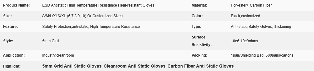 | OEM Working Glove 5mm Gird ESD Antistatic High Temperature Resistance Heat-resistant Gloves | |