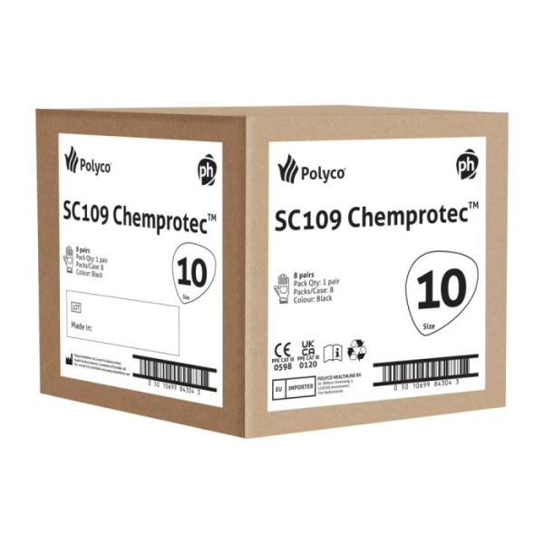 Chemprotec is our premium quality, natural rubber latex, highly chemical resistant gauntlet. It protects against a wide array of chemicals, as well as protecting well against mechanical hazards including abrasion level 4 and even contact heat resistance. It is chlorinated, ergonomically shaped and has a rolled cuff. SC109 is the heavy weight 66cm long version for protection up the arm.