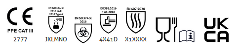 - Tested to European standards EN ISO 21420, EN ISO 374-1, EN ISO 374-4 & EN ISO 374-5