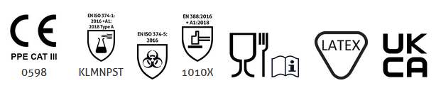 - Tested to European standards EN ISO 21420, EN ISO 374-1, EN ISO 374-4 & EN ISO 374-5