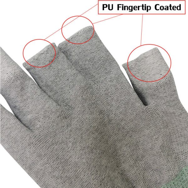 High Quality Polyester ESD Antistatic 3 Fingers Half Work Gloves PU Fingertip Coated Safety Glove for Industry