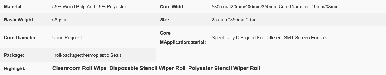 Excellent Quality Polyester Disposable Cleanroom SMT Roll Wipe for Industrial Use