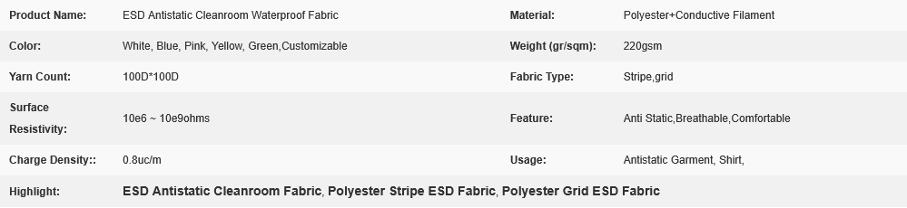 ESD Antistatic Cleanroom Waterproof Fabric: