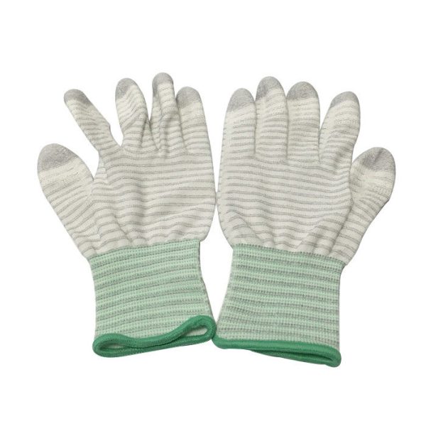 ESD Safe PU Top Coated Striped Gloves Fingertip Carbon Knitted Size S/M/L: AG0109