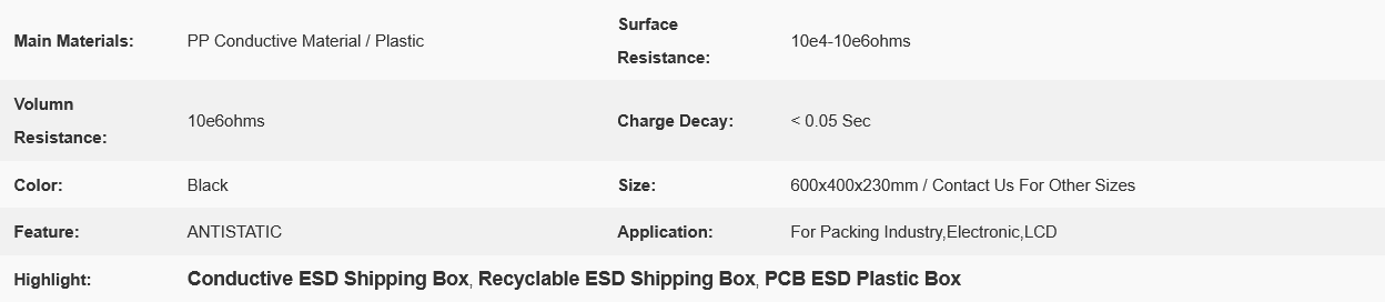 Recyclable Conductive Anti Static ESD Shipping Box For Circulation