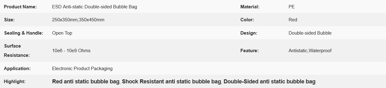 Red ESD Anti-static Double-sided Bubble Bag