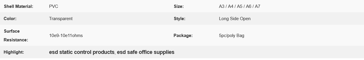 1, Antistatic ESD rigid document holder, it is constructed of thick PVC material, clear, long side open, and suitable for EPA workshop files collection