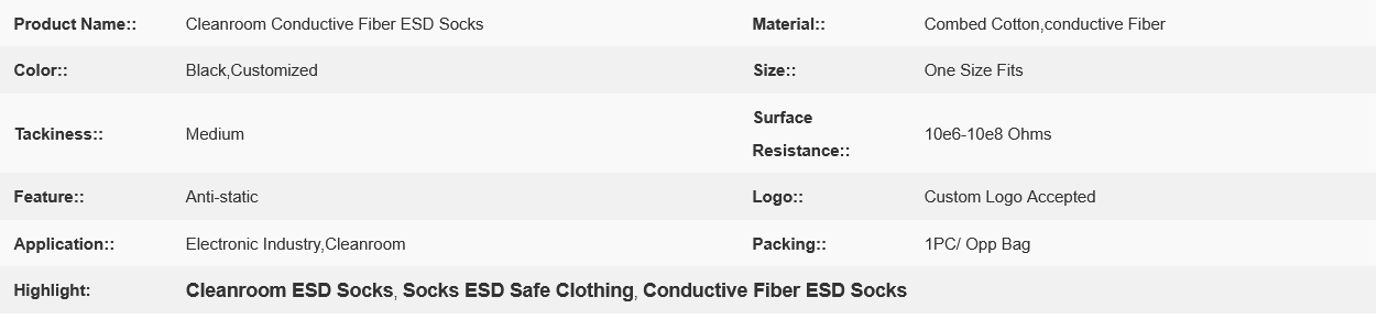 Cleanroom Conductive Fiber ESD Socks