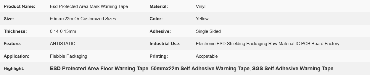 Industrial Yellow Esd Protected Area Mark Warning Tape