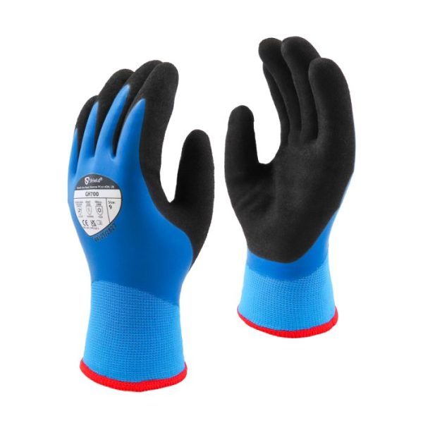 Shield GH700 is our latex, dual coated general handling glove with an acrylic terry liner offering thermal properties for cold conditions. The first layer, a full coating, offers water resistance. The second layer, a palm coating, has been designed for grip and further abrasion resistance, without effecting the dexterity of the glove. Shield GH700 offers excellent grip and warmth in a variety of challenging environments.