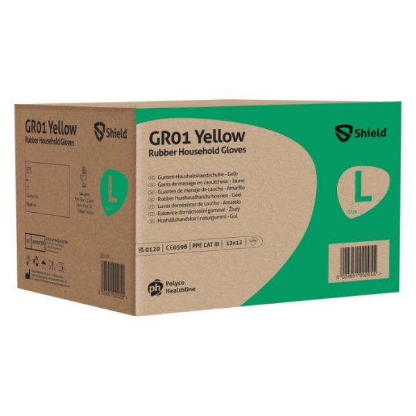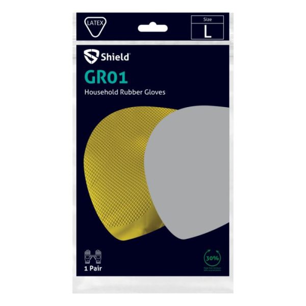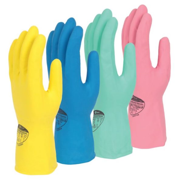 GR01 is a CAT III rubber household glove, available in 4 colours to allow for use in colour coded areas & tasks commonly found in the food sector. Offering great resistance to chemicals, Shield GR01 is soft and comfortable, for all day use.