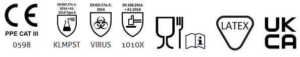 - Tested to European standards EN ISO 21420, EN ISO 374-1, EN ISO 374-4 & EN ISO 374-5