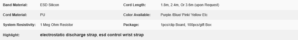 | Composition of ESD Wristband | ESD Silicon |