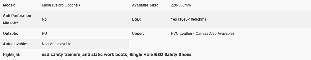 Single Hole Mesh ESD Safety Shoes Anti Static Footwear Non Autoclavable