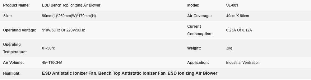 Sl-001 Bench Top ESD Antistatic Ionizer Fan Ionizing Air Blower