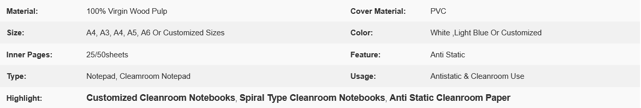 Spiral Type Customized Cleanroom Notebooks For Industrial