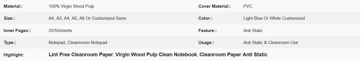 | Pulping Type | Notebook, Cleamroom Notepad |